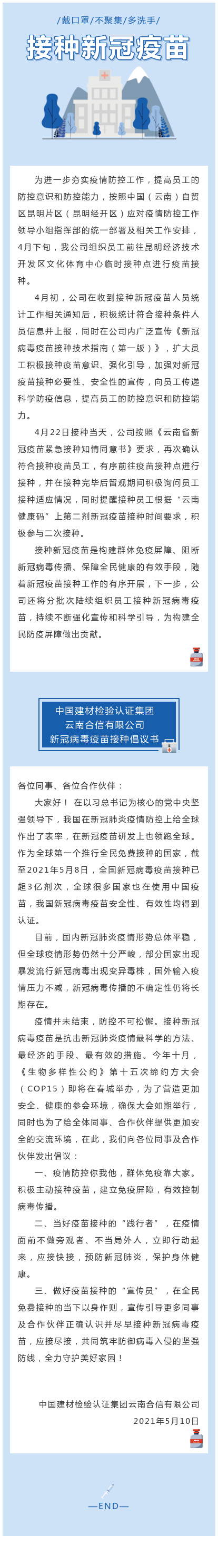 國(guó)檢集團(tuán)·云南合信組織員工接種新冠疫苗